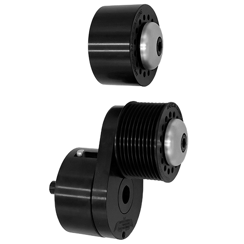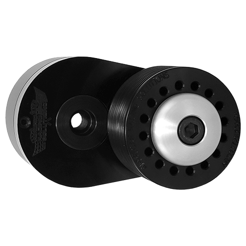 Our Hellcat Racing Belt Tensioner is fabricated from 6061-T6 Billet Aluminum and is designed and engineered using our custom springs, hardened steel shafts, needle, and thrust bearings. This is a direct bolt-on replacement for the stock tensioner for the supercharger drive and with 35 LBS of spring tension, it is nearly twice as strong as the factory item. This item is sold with a 72 MM x 10 Rib Double Bearing Grooved Billet Pulley (weighing 1 LB less than the stock pulley), a Billet Dust cover and all necessary mounting hardware. All components are anodized, providing a hardened finish for protection and to minimize belt wear. In addition, we also offer a 73 MM x 10 Rib Double Bearing Smooth Billet Idler Pulley, which is designed to replace the steel idler from the factory. This too weighs 1 LB less than the factory pulley and includes a billet dust cover and mounting bolt. This can be purchased as part of our Hellcat Racing Belt Tensioner Kit. Finally, we offer ceramic bearings as an upgrade for any of our pulleys.